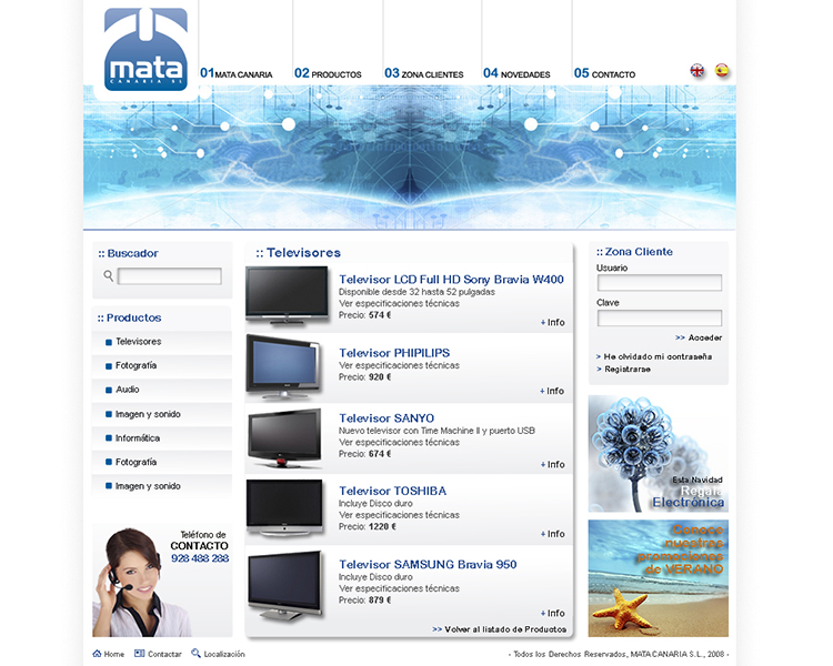 Página web que muestra los productos y servicios de una tienda especializada en tecnología.