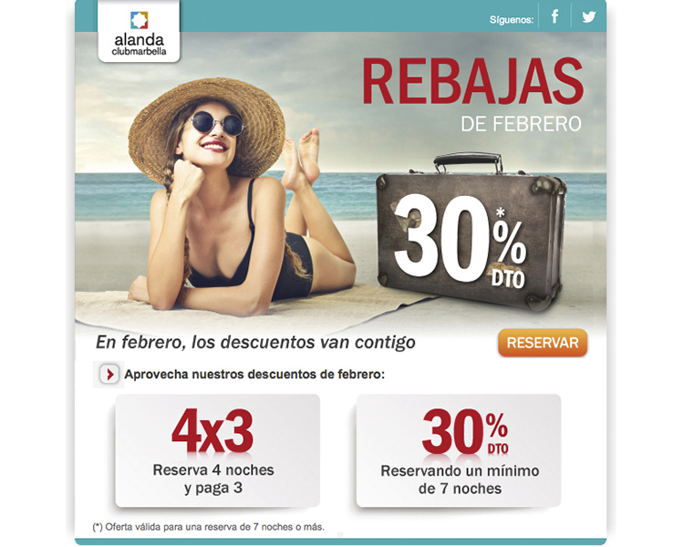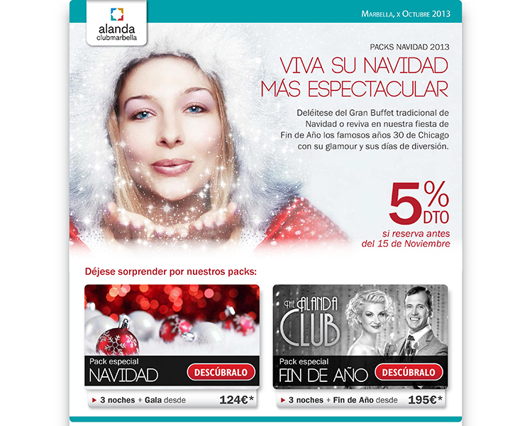 Newsletter de periodicidad mensual del completo turístico Alanda Club Marbella.