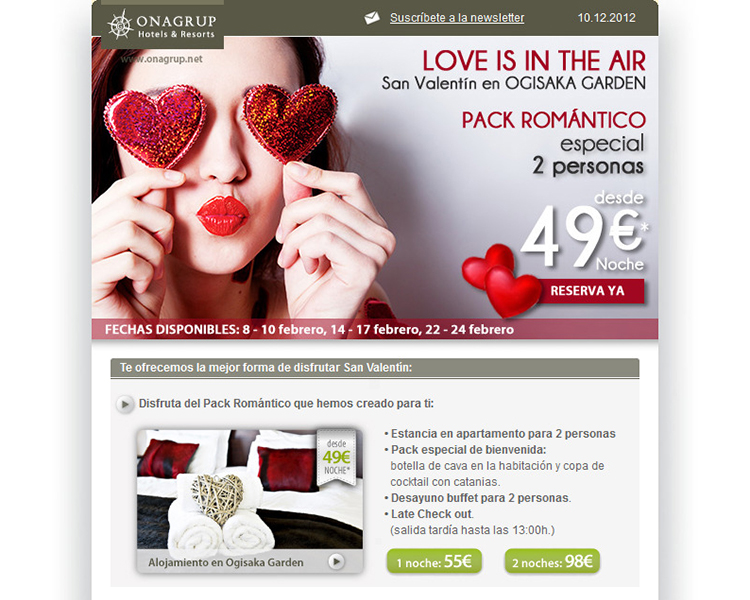 Newsletter de periodicidad mensual del grupo hotelero Onagrup, dedicado a turismo de tiempo compartido.